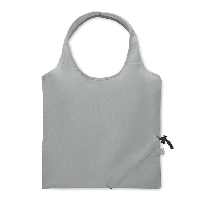 Faltbare Einkaufstasche aus recycelter Pre-Consumer-Baumwolle (70% recycelte Baumwolle und 30% RPET). 140 g/m². Artikel kann nach dem Bedrucken schrumpfen.