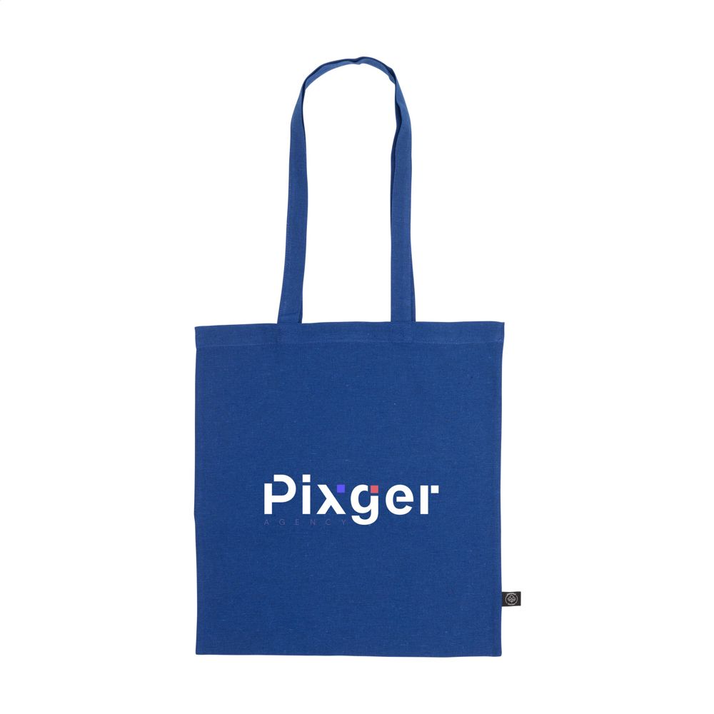 Einkaufstasche mit langen Griffen aus 80% recycelter Baumwolle und 20% recyceltem Polyester (150 g/m²). GRS-zertifiziert. Recyceltes Material insgesamt: 100%. Fassungsvermögen ca. 8 Liter.