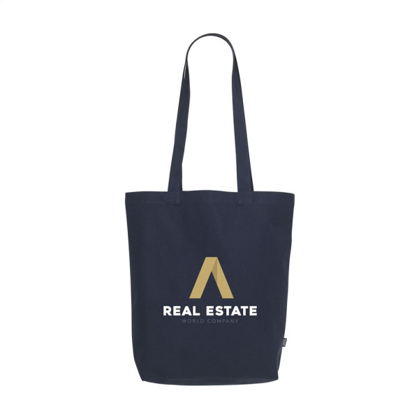 Einkaufstasche mit langen Griffen. Diese Tasche ist aus extra schwerem, recyceltem Baumwoll-Segeltuch (260 g/m²) gefertigt. GRS-zertifiziert. Recyceltes Material insgesamt: 92%. Fassungsvermögen ca. 15 Liter.
