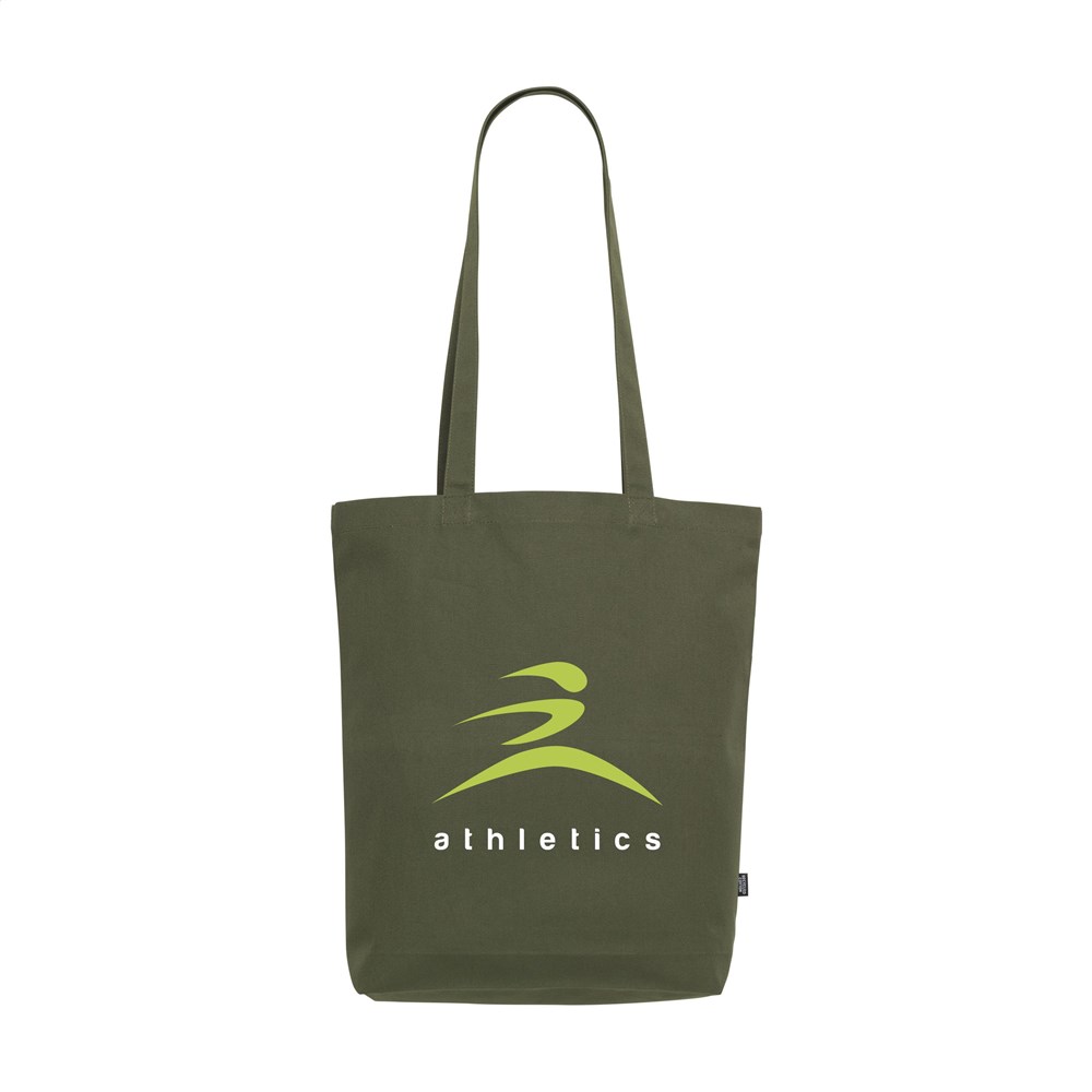 Einkaufstasche mit langen Griffen. Diese Tasche ist aus extra schwerem, recyceltem Baumwoll-Segeltuch (260 g/m²) gefertigt. GRS-zertifiziert. Recyceltes Material insgesamt: 92%. Fassungsvermögen ca. 15 Liter.