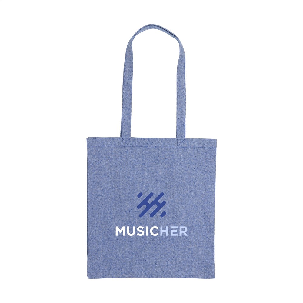 Einkaufstasche mit langen Griffen, aus 80% meliertem, recyceltem Baumwoll-Segeltuch und 20% recyceltem Polyester (280 g/m²). GRS-zertifiziert. Recyceltes Material insgesamt: 100%. Fassungsvermögen ca. 12 Liter. Diese Baumwolle ist recycelt. Daher kann die Farbe je nach Produkt variieren.