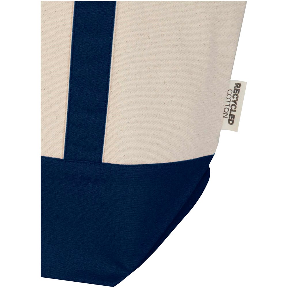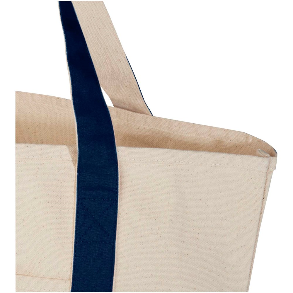 Die Sam Tragetasche aus 100 % GRS-zertifizierter Recyclingbaumwolle ist die perfekte Tasche für ein Picknick oder den Einkauf. Das Material besteht aus 320 g/m² Baumwolle. Die Tasche ist strapazierfähig und langlebig und die doppelten Tragegriffe ermöglichen den Transport von schweren Gegenständen im Hauptfach. Die für diese Tragetasche verfügbaren Druckverfahren sind ebenfalls GRS-zertifiziert, sodass die gesamte Lieferkette transparent und zertifiziert ist. Grifflänge im Hängezustand: 30 cm. Widerstand bis zu 10 kg Gewicht. Fassungsvermögen: 15 Liter. Hergestellt in Indien.
