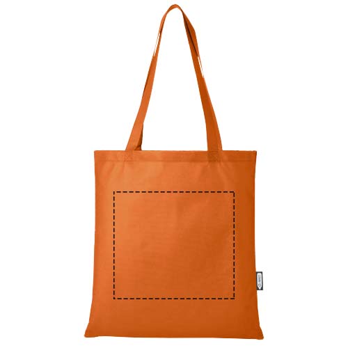 Die Zeus GRS-recycelte große Tragetasche aus strapazierfähigem und reißfestem RPET ist eine perfekte und nachhaltigere Option für Messen oder Konferenzen. Ihr schlankes Design macht sie zu einem eleganten Modell, das sich für den Transport von leichten Gegenständen wie einem Notebook und einem Stift eignet. Die Griffe sind 29 cm lang, sodass die Tragetasche leicht über der Schulter getragen werden kann. Belastbarkeit bis zu 5 kg.