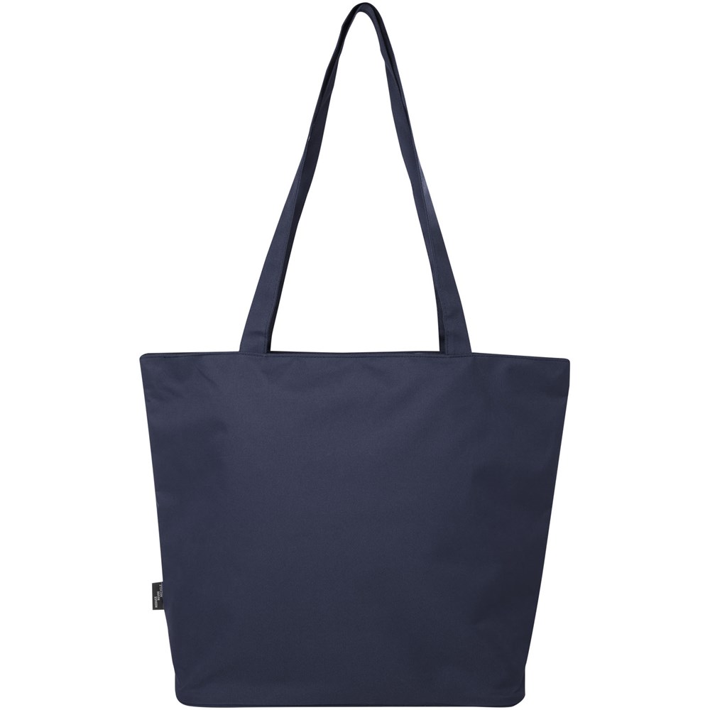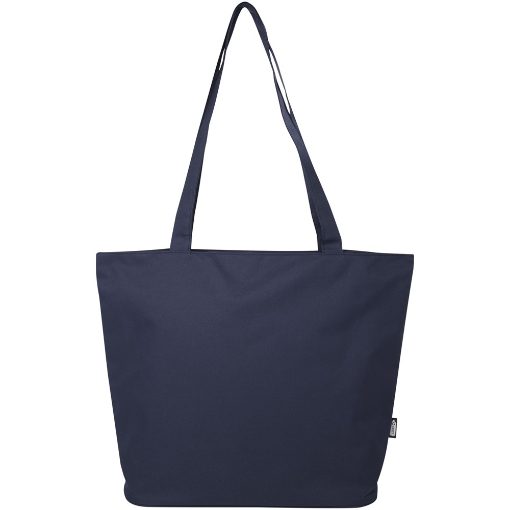 Die Panama GRS-recycelte Tragetasche mit Reißverschluss aus wasserabweisendem 600D RPET ist eine perfekte Mehrzwecktasche für den Besuch einer Veranstaltung, für den Strand oder für den Lebensmitteleinkauf. Sie verfügt über ein Hauptfach mit Reißverschluss und eine Innentasche mit Reißverschluss, die groß genug ist, um Ihr Telefon und andere wertvolle Gegenstände zu verstauen. Die Griffe sind 34 cm lang, sodass die Tasche leicht über der Schulter getragen werden kann. Belastbarkeit bis zu 10 kg. PVC frei.