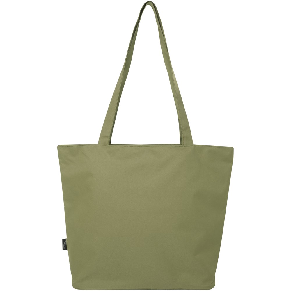 Die Panama GRS-recycelte Tragetasche mit Reißverschluss aus wasserabweisendem 600D RPET ist eine perfekte Mehrzwecktasche für den Besuch einer Veranstaltung, für den Strand oder für den Lebensmitteleinkauf. Sie verfügt über ein Hauptfach mit Reißverschluss und eine Innentasche mit Reißverschluss, die groß genug ist, um Ihr Telefon und andere wertvolle Gegenstände zu verstauen. Die Griffe sind 34 cm lang, sodass die Tasche leicht über der Schulter getragen werden kann. Belastbarkeit bis zu 10 kg. PVC frei.