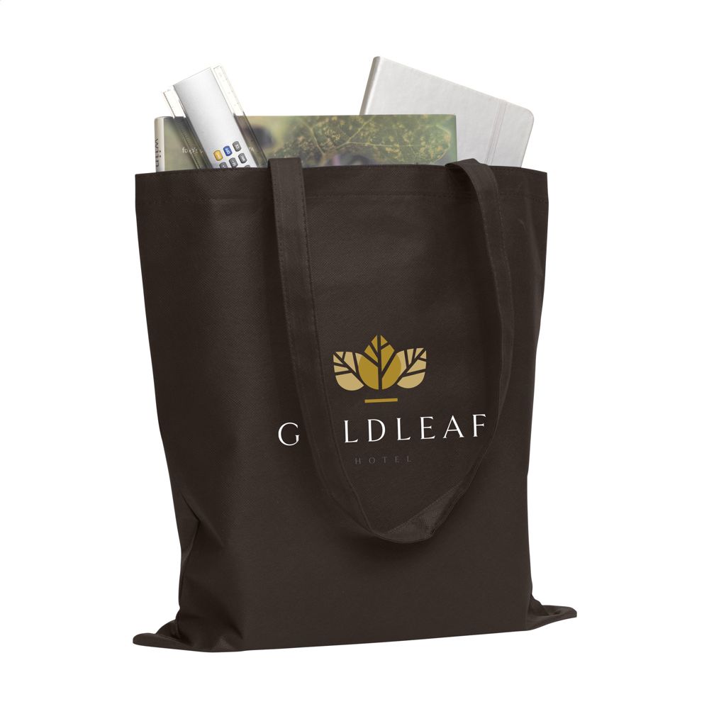 Einkaufstasche mit langen Henkeln aus "non woven" Material (80 g/m²): eine superleichte, starke Kunstfaser. Fassungsvermögen ca. 8 Liter.