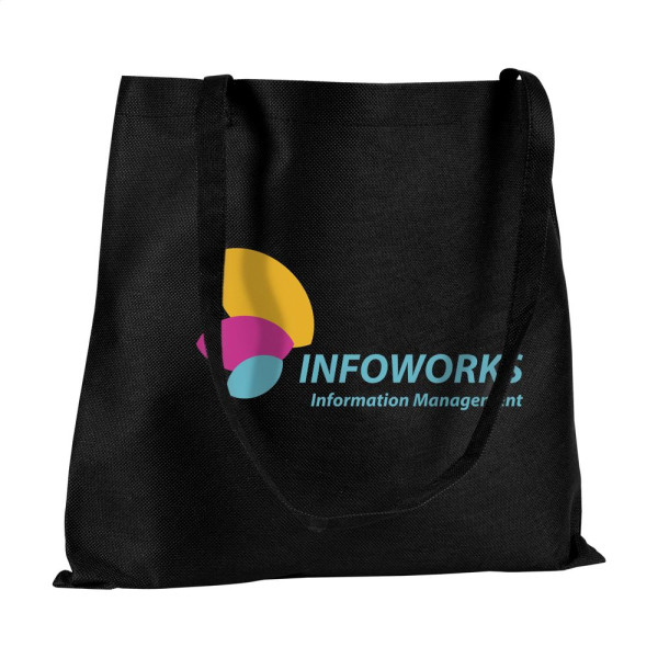Einkaufstasche mit langen Henkeln aus "non woven" Material (80 g/m²): eine superleichte, starke Kunstfaser. Fassungsvermögen ca. 8 Liter.