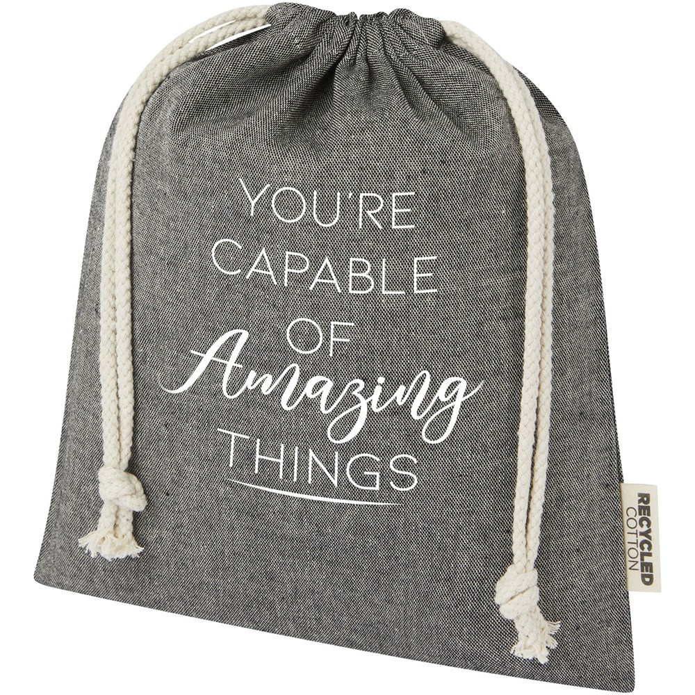 Pheebs 150 g/m² GRS Zuziehbeutel aus Recyclingbaumwolle mittel 1,5 l