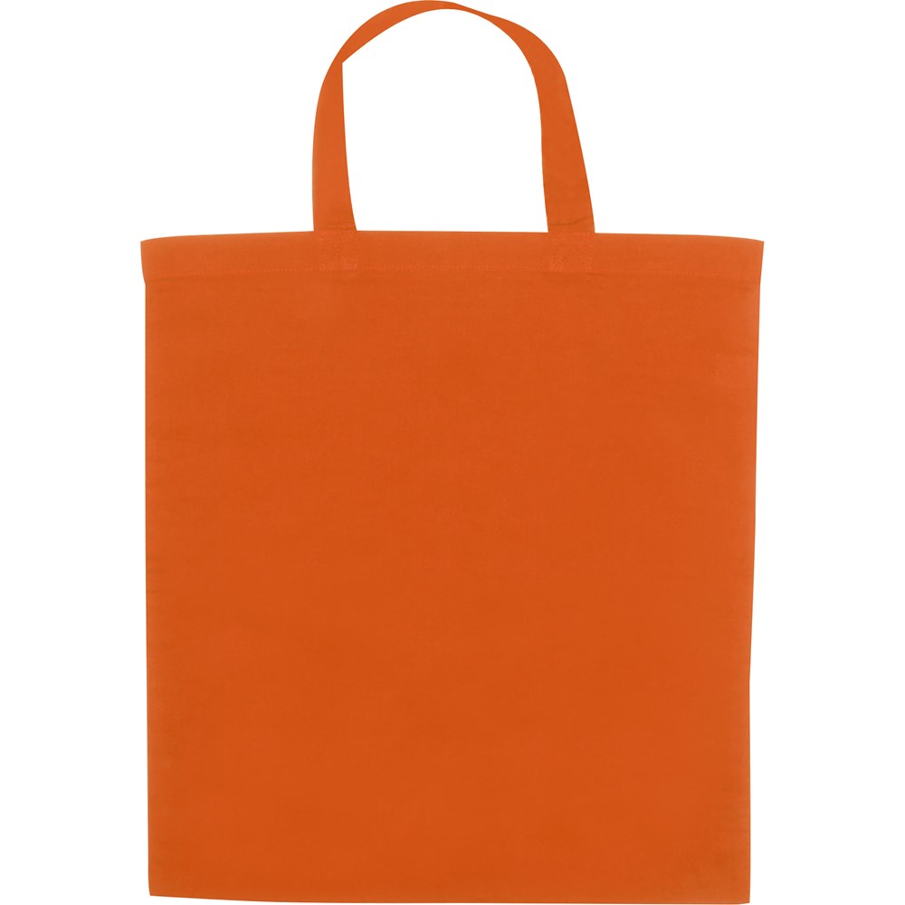 Oeko-Tex® STANDARD 100 zertifizierte Tasche aus Baumwolle mit einer Grammatur von 140 g/m² und kurzen Henkeln. Ihre Werbung drucken wir auf eine Seite.