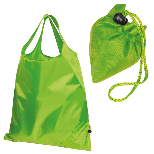 Faltbare Einkaufstasche aus robustem 210D Polyester mit Tragehenkeln. Der Werbeaufdruck erfolgt direkt auf die Tasche. Für 2C oder mehr, Preise auf Anfrage.