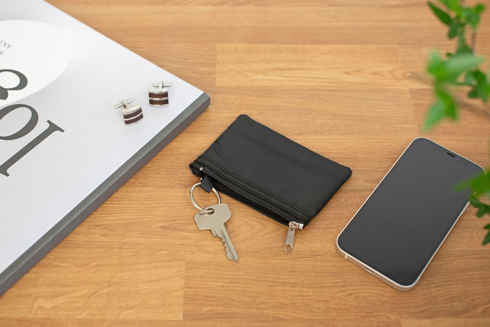 Schlüsseletui aus Nylon (70D) mit Reißverschluss und Schlüsselring.