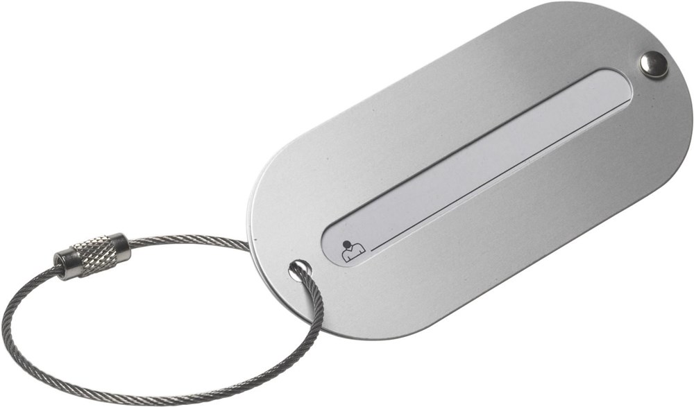 Kofferanhänger aus Metall, matt gebürstet mit Befestigungsdraht. mehr