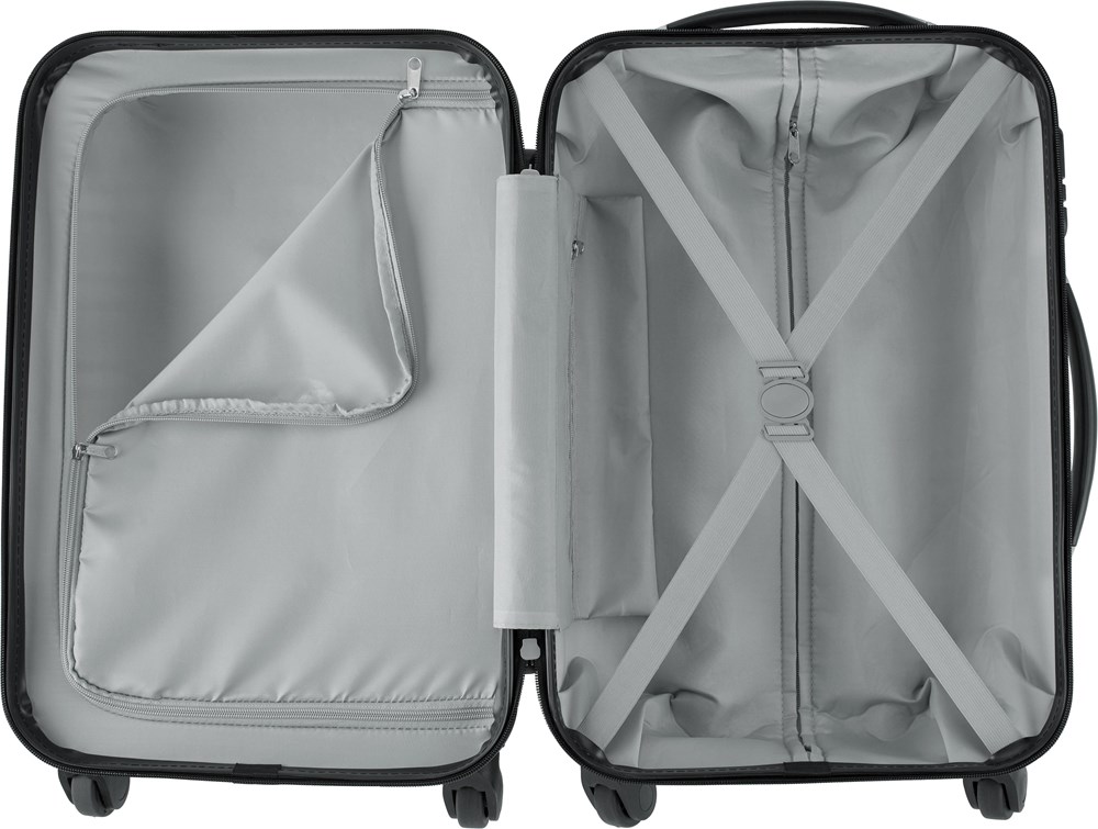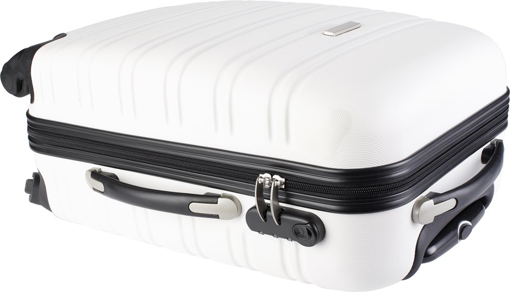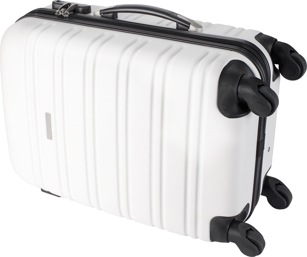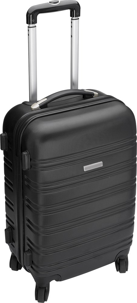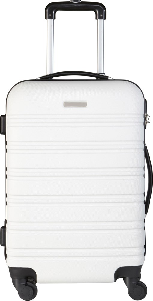 Trolley aus ABS-Kunststoff, mit Teleskopgriff, Zahlenschloss, 4 Kunststoff-Rollen und Metallplättchen für die Werbeanbringung
