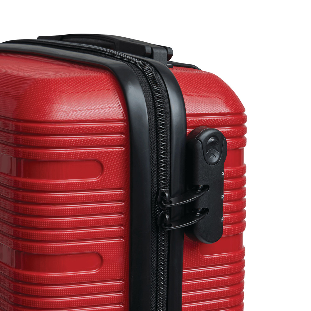 Trolley-Bordcase YORK: aus besonders widerstandsfähigem Material, beidseitige Packmöglichkeit, mit Reißverschluss-Netztasche und elastischem Packgurt, arretierbares und versenkbares Trolleysystem, Tragegriff, 4-Doppelrollen-360°-Leichtlauf-Fahrwerk, austauschbares Metalllogo auf der Vorderseite, Zahlenkombinationsschloss – boarding size für Low-Budget-Fluglinien geeignet