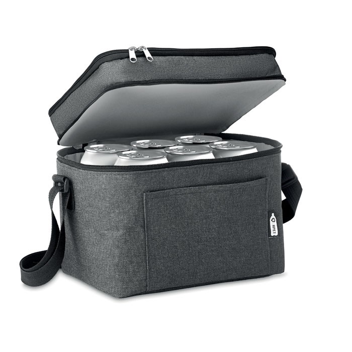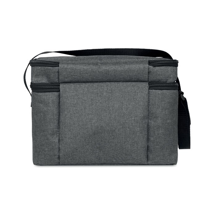 2 tone Kühltasche aus 600D RPET. Mit 2 Fächern und PEVA-Futter. Verstellbarer Schultergurt und Fronttasche. Isoliermaterial: 0,15 mm PEVA + 3 mm Schaumstoff. Füllmenge: 3l.