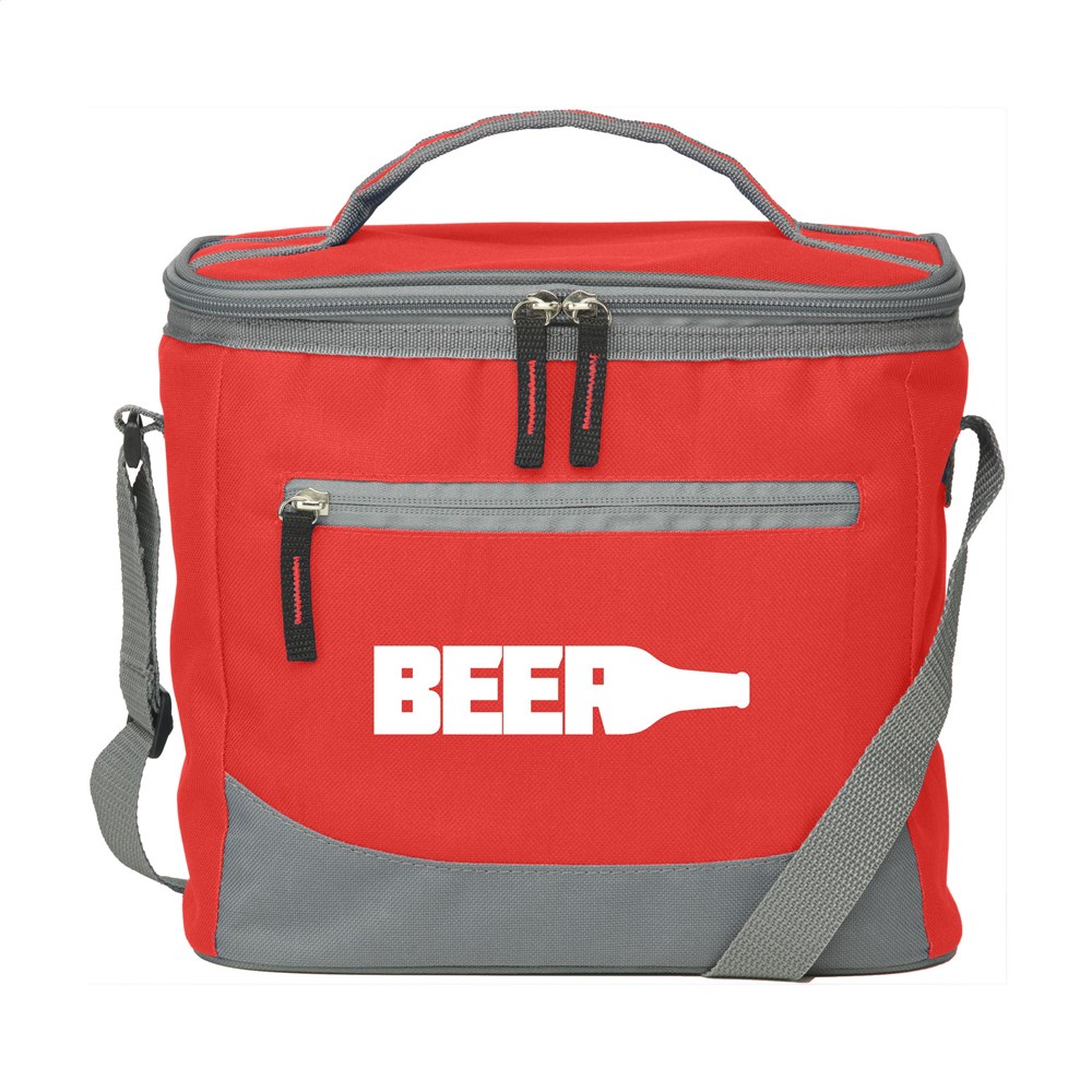 Kühltasche im praktischen Format. Aus 600D Polyester. Mit großem Kühlfach,Fronttasche mit Reissverschluss, Griff und anpassbarem Schultergurt. Passend für 12 Getränkedosen. Fassungsvermögen ca. 10 Liter.