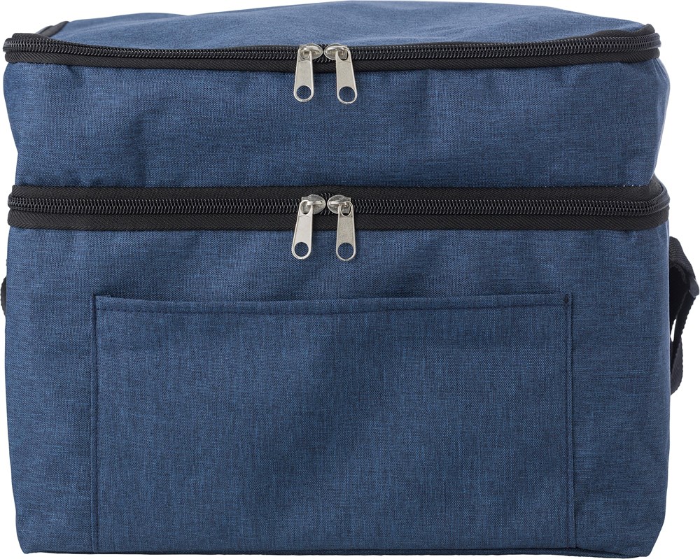 rPET-Kühltasche mit Aluminiumfolie innen. Zwei Fächer mit Reißverschluss. Inklusive Tragegurt.