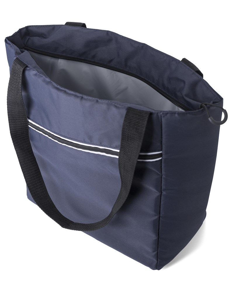 Kühltasche aus Pongee (75D) mit einer PEVA-Beschichtung im Inneren und langen Tragegriffen. Mit einem großen Hauptfach und einer Vordertasche mit Reißverschluss.