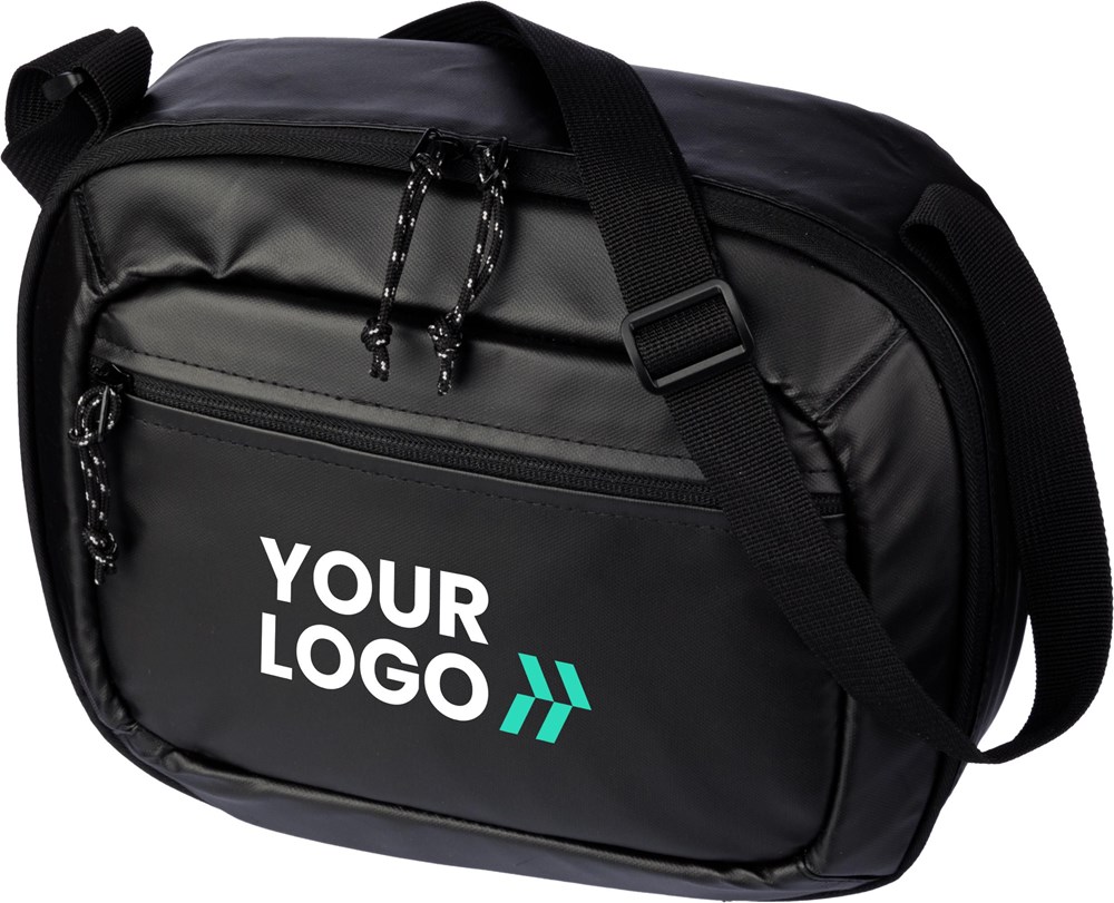 Polyester (600D) und TPE Kühltasche mit PEVA-Folienfutter. Großes Reißverschlussfach auf der Oberseite und eine Reißverschlusstasche auf der Vorderseite. Langer verstellbarer Schultergurt.