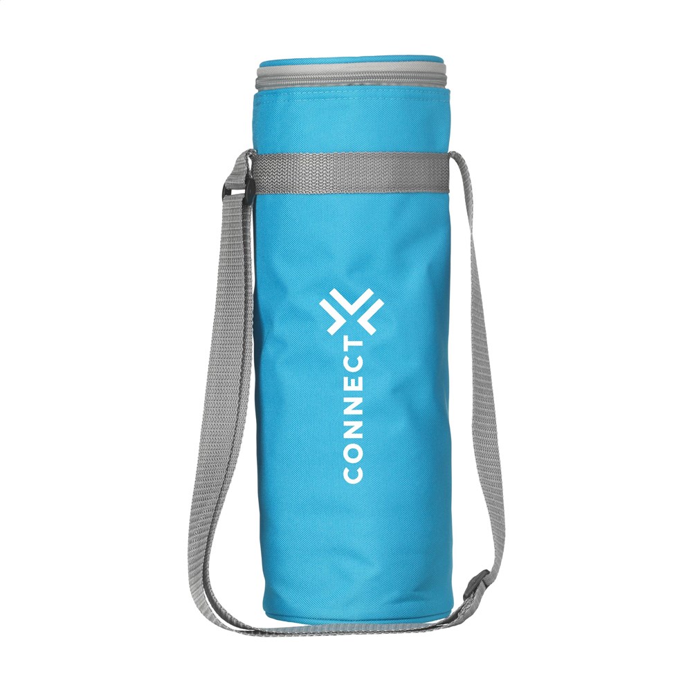 Kühltasche aus 600D-RPET-Polyester. Geeignet für Flaschen bis zu 1,5 Liter. Mit verstellbarer Trageriemen. GRS-zertifiziert. Recyceltes Material insgesamt: 51%.
