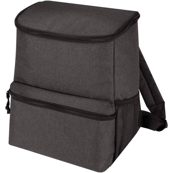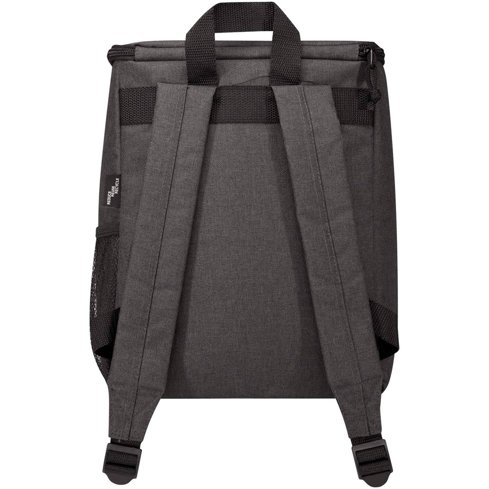 Der Tundra Kühlrucksack verfügt über ein großes PEVA-gefüttertes Hauptfach mit Reißverschluss, wodurch er sich ideal für Wanderungen oder Picknicks eignet. Der Kühlrucksack wird aus GRS zertifiziertem, recyceltem PET Kunststoff hergestellt. Hat eine seitliche Netztasche für eine Wasserflasche, und die vordere Reißverschlusstasche eignet sich für kleinere Gegenstände. Die gepolsterten Schultergurte lassen sich für einen perfekten und bequemen Sitz verstellen.