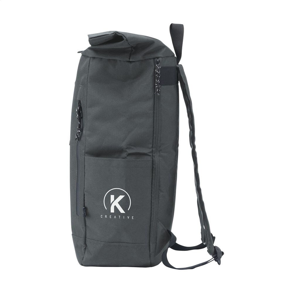 Praktischer, robuster und wasserabweisender „Roll-Top“-Kühlrucksack aus RPET-Polyester. Der... mehr