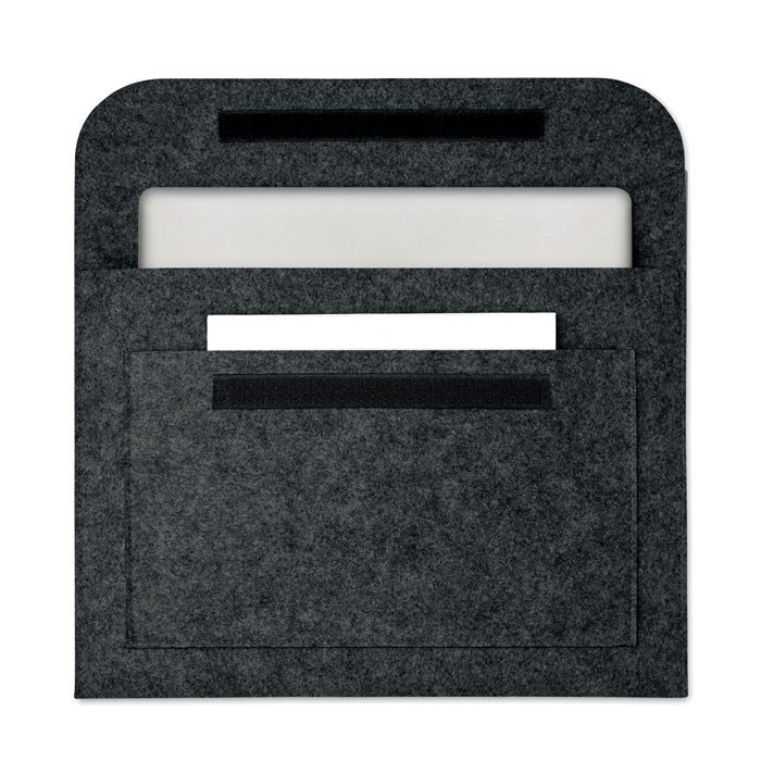 15'' Laptophülle/Dokumententasche aus RPET Filz (2 mm Stärke). Mit Fronttasche und Klettverschluss.
