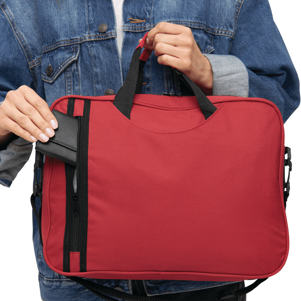 Dokumententasche BUSY: vertikales Reißverschluss-Vorfach, Einsteckfach vorne, Reißverschluss-Hauptfach, verstärkte Tragegriffe, verstell- und abnehmbarer Schultergurt