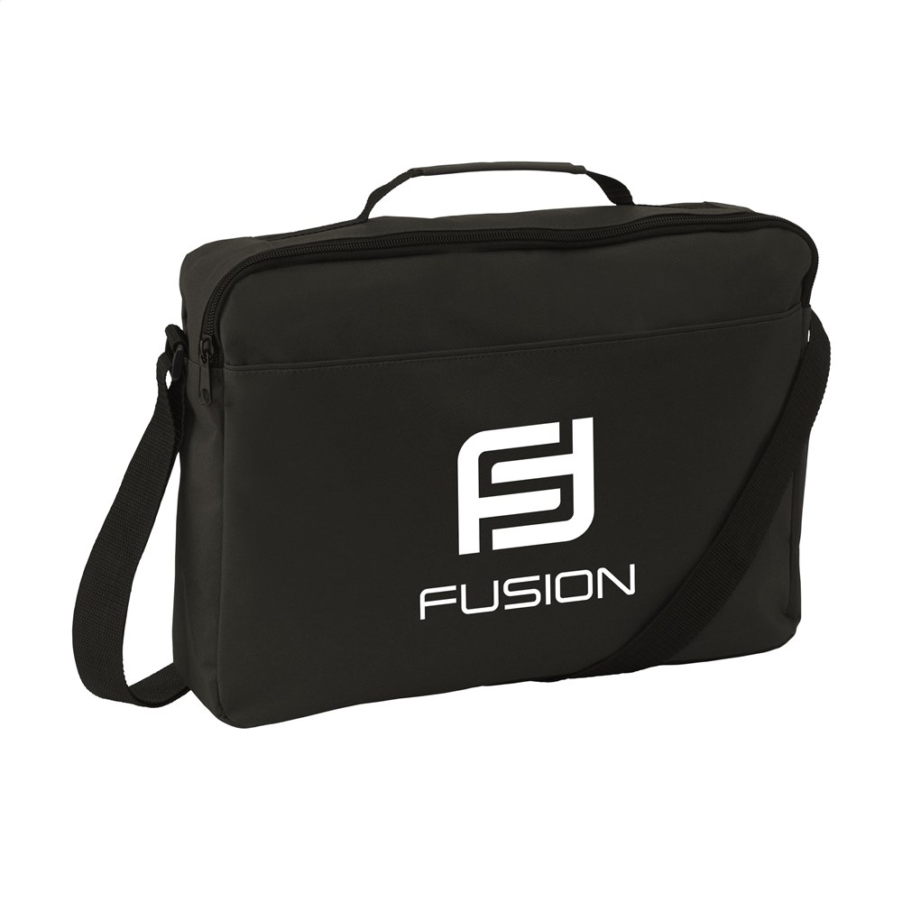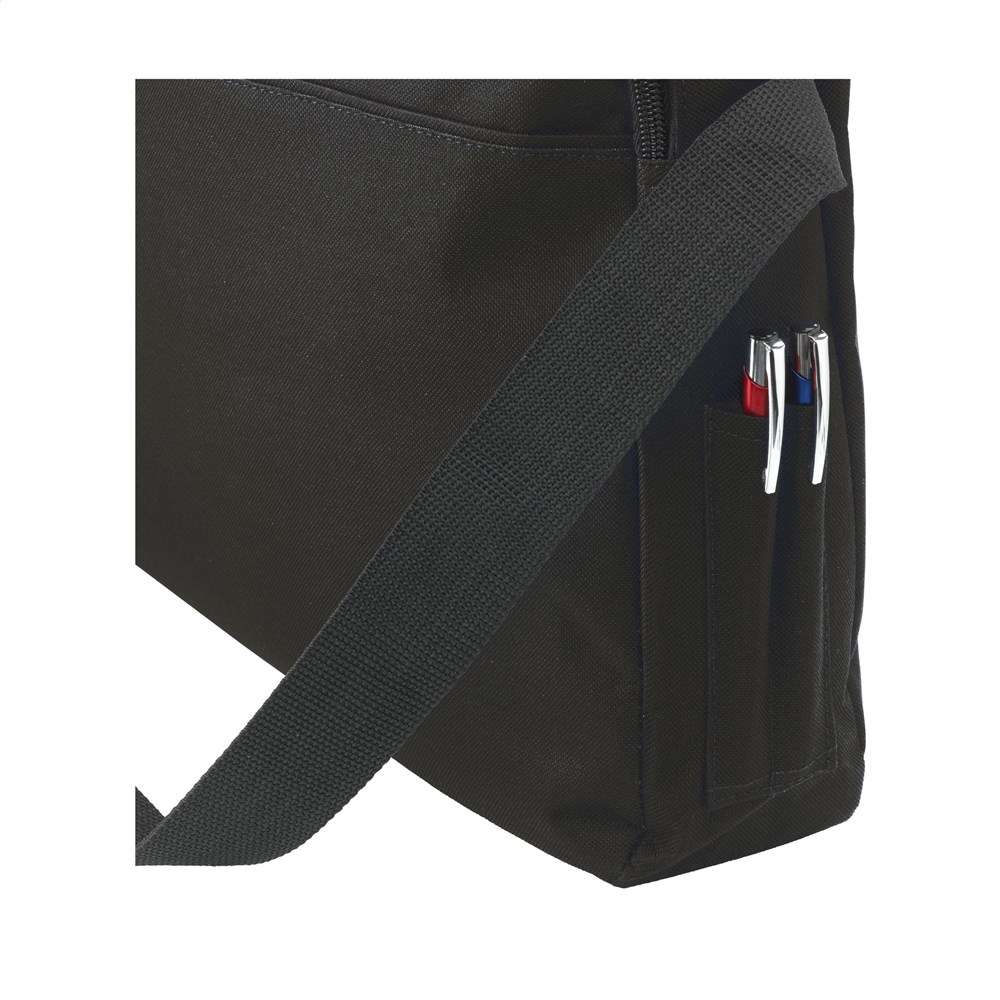 Schulter-/Dokumententasche aus 600D Polyester mit einem großen Hauptfach, 2 Fächern für Stifte und verstellbarem Schultergurt.