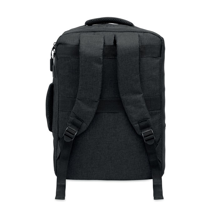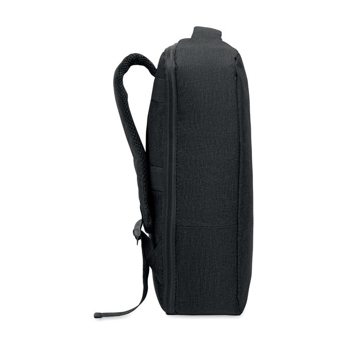 Schlanker 15'''' Laptop-Rucksack aus 300D RPET mit 210D RPET-Futter. Laptopfach, 2 Innentaschen, 2 Stiftfächer, gepolsterte Tragegriffen. Weich gepolsterte Rücken- und Schultergurte. Rückseitige Trolley-Halterung.