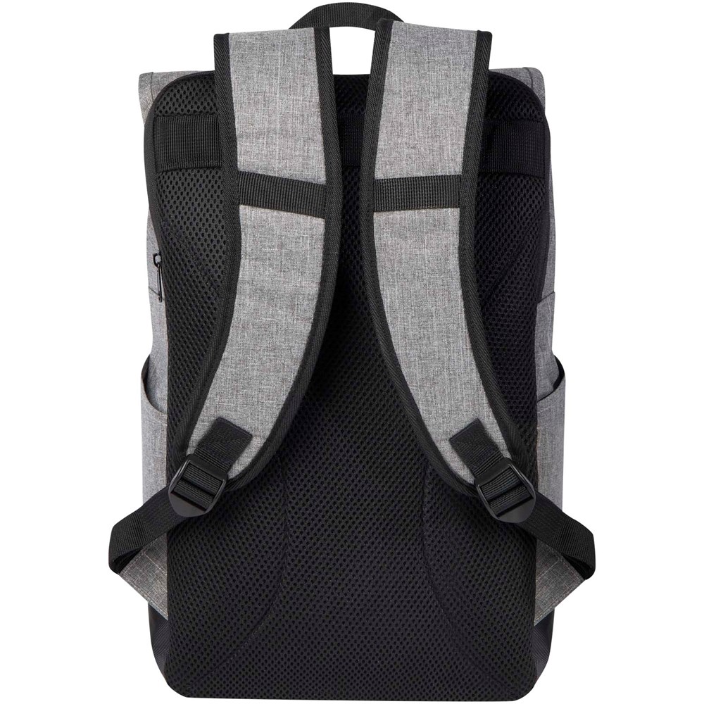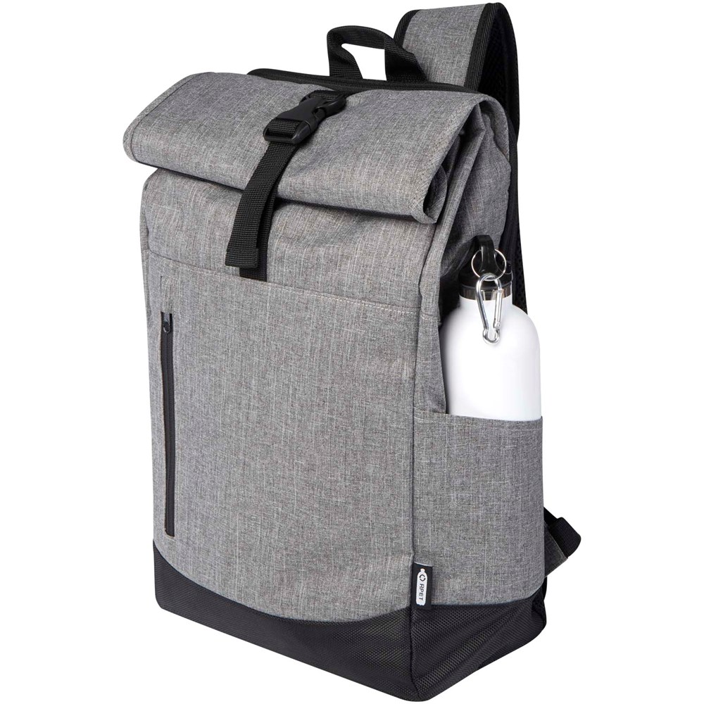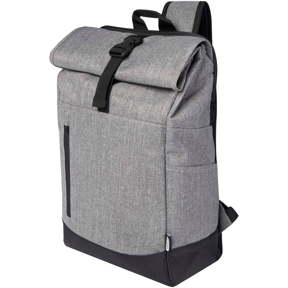 15,6" Laptop-Rucksack mit gepolstertem Laptopfach, gepolsterten verstellbaren Schultergurten, Hauptfach mit Reißverschluss mit Rolltop-Verschluss, 2 Tragegriffen und Fronttasche mit Reißverschluss.