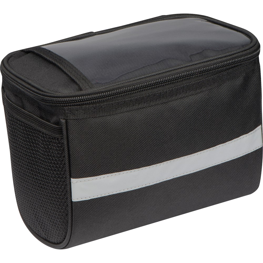 Fahrradtasche zur Befestigung am Lenker mit einem großen Hauptfach, Smartphonefach, das per Touch durch die Folie bedient werden kann. Ein reflektierender Streifen vorne macht ebenfalls auf Sie aufmerksam. Ihre Werbung wird auf die Tasche gedruckt.