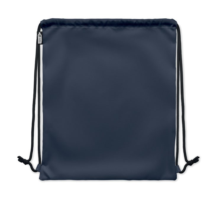 Großer Beutel mit Kordelzug. Seitliche Reißverschlusstasche. 300D RPET-Polyester