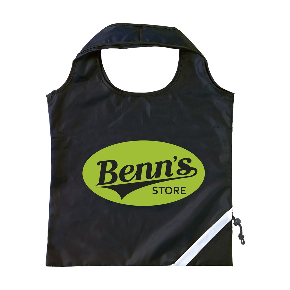 Faltbare Einkaufstasche aus strapazierfähigem Polyester. Mit doppeltem Tragegurt. Im Handumdrehen von Beutel zur Tasche und umgekehrt. Maße gefaltet: 6 x 2,5 x 12,5 cm. Fassungsvermögen ca. 8 Liter.