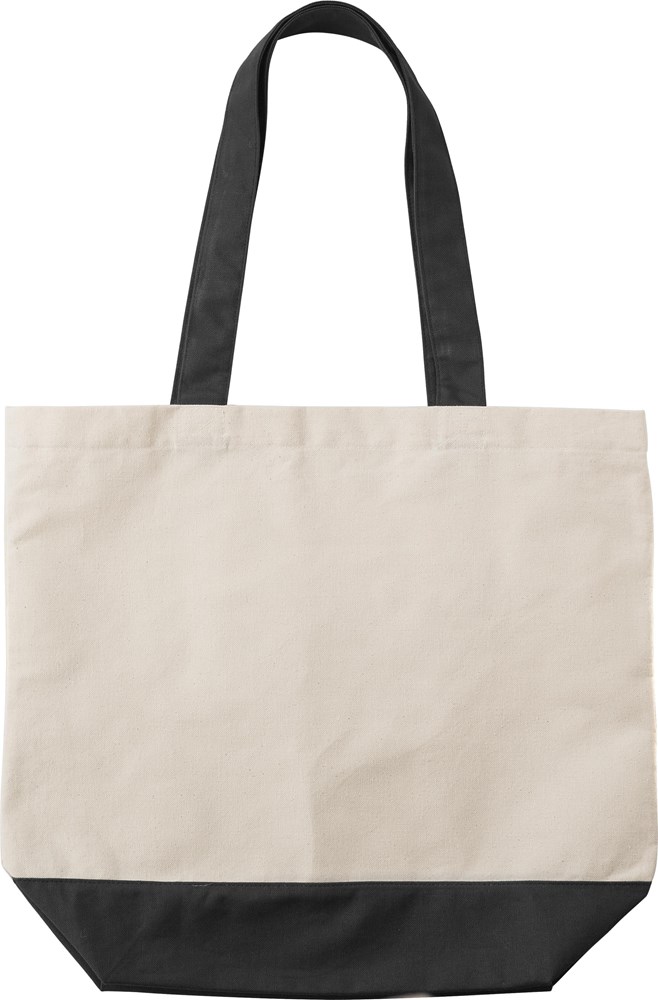 Einkaufstasche aus Baumwolle (280 g/m2) mit farbigen Details und passenden Griffen. Ein großes Fach.