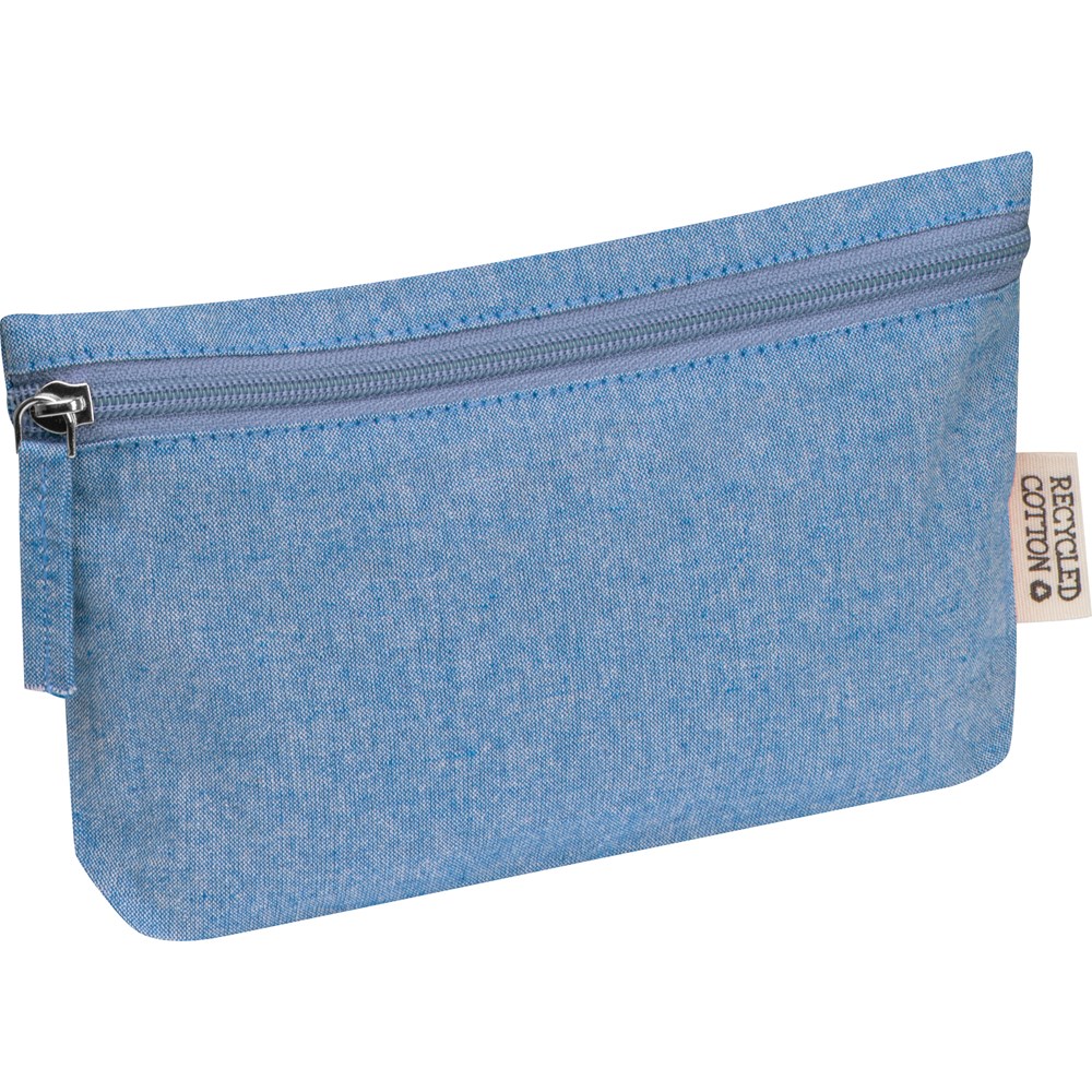 Unser Täschchen aus recycelter Baumwolle (180 g/m²) ist die ideale Aufbewahrungslösung für Stifte, Kosmetikartikel oder kleine Utensilien. Hergestellt aus Oeko-Tex® STANDARD 100 zertifizierter Baumwolle, kombiniert es Funktionalität und ansprechendes Design. Der praktische Reißverschluss sorgt für sicheren Verschluss, während das robuste Material für eine langlebige Nutzung ausgelegt ist. Ihre Werbung wird direkt unterhalb des Reißverschlusses gedruckt und sorgt für eine stilvolle Markenpräsentation.