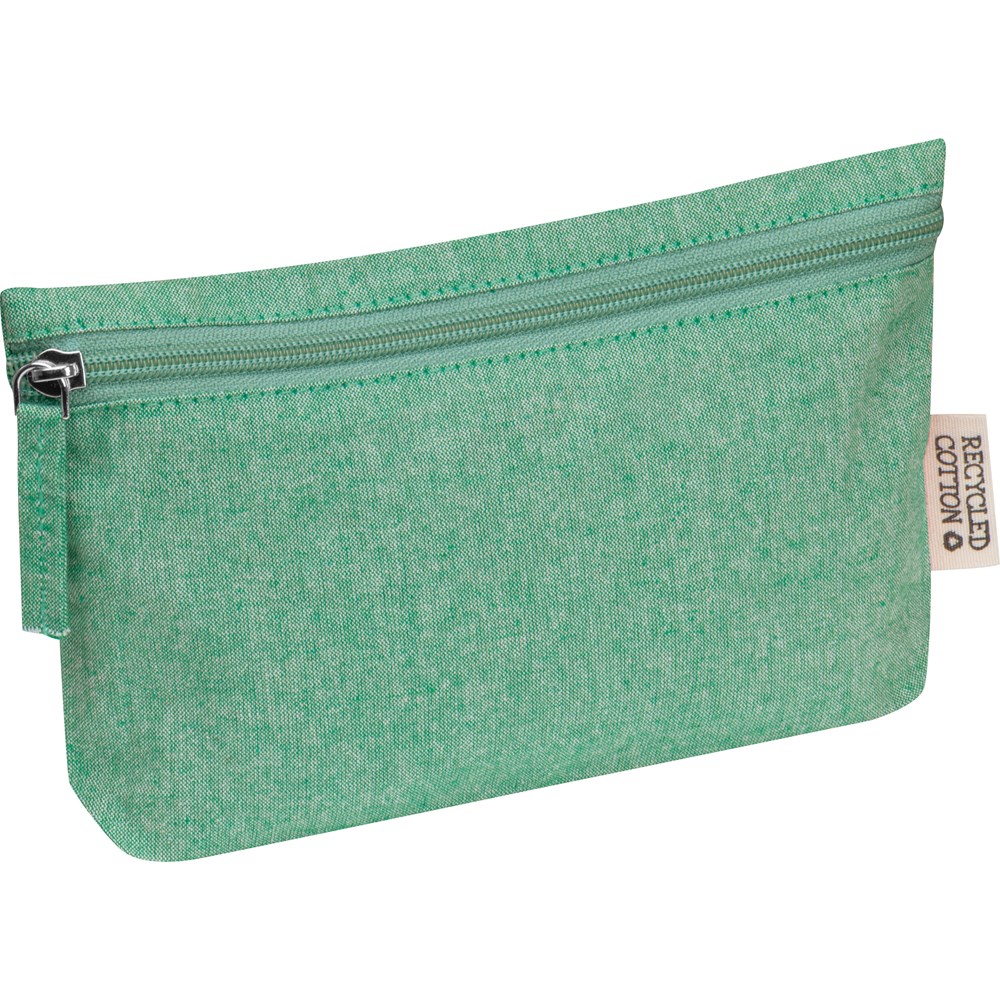 Unser Täschchen aus recycelter Baumwolle (180 g/m²) ist die ideale Aufbewahrungslösung für Stifte, Kosmetikartikel oder kleine Utensilien. Hergestellt aus Oeko-Tex® STANDARD 100 zertifizierter Baumwolle, kombiniert es Funktionalität und ansprechendes Design. Der praktische Reißverschluss sorgt für sicheren Verschluss, während das robuste Material für eine langlebige Nutzung ausgelegt ist. Ihre Werbung wird direkt unterhalb des Reißverschlusses gedruckt und sorgt für eine stilvolle Markenpräsentation.