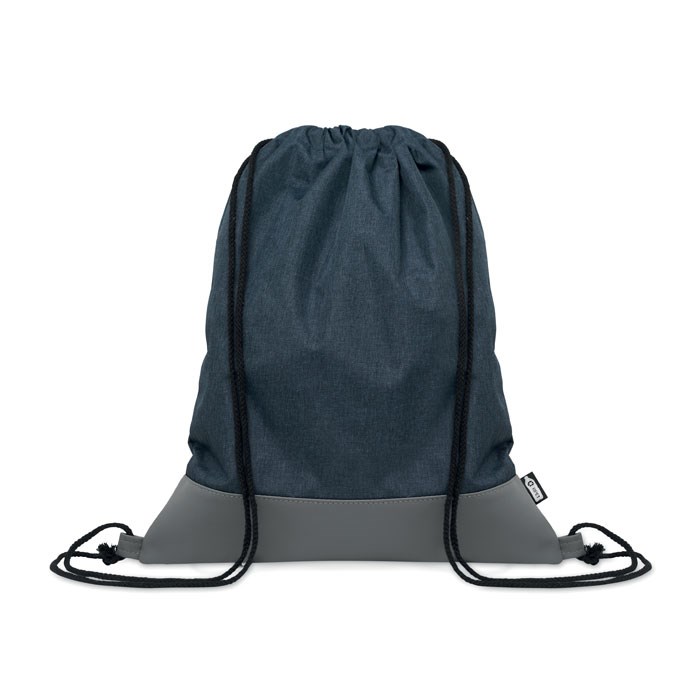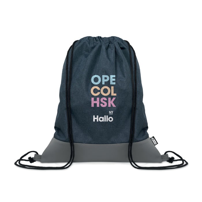 Beutel mit Kordelzug aus 2tone 300D RPET Polyester mit Besatz aus weichem PU und Polycotton-Kordel.