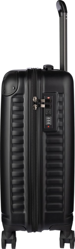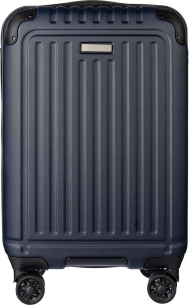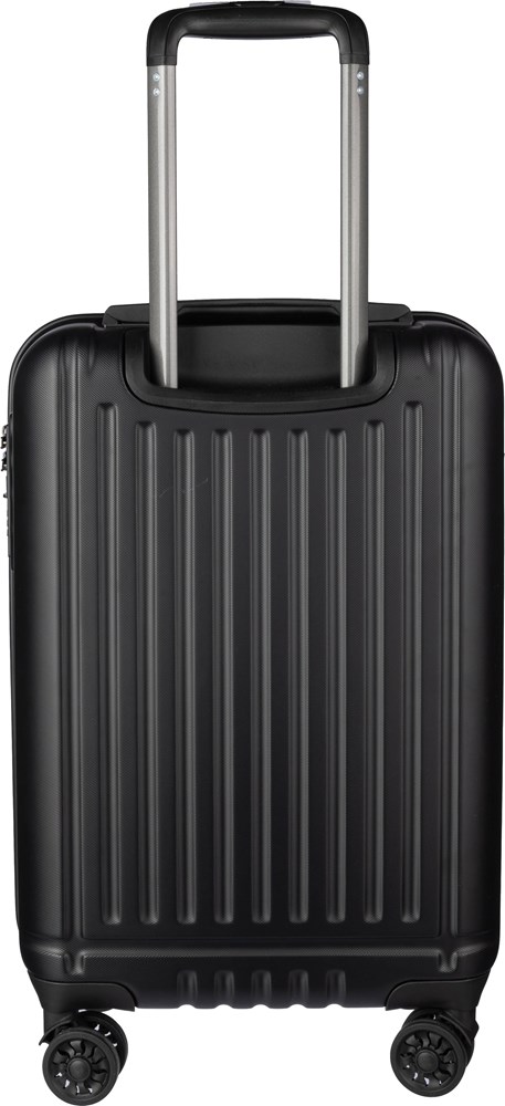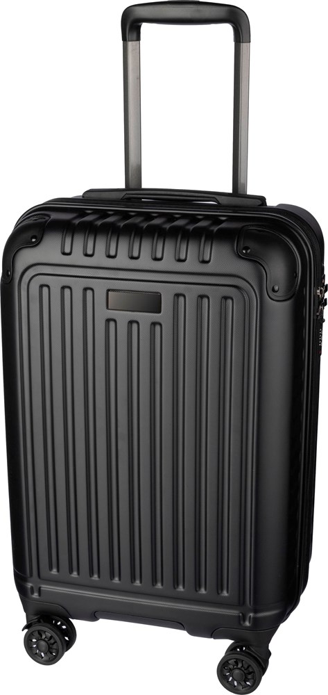 ABS-Gepäcktrolley (20 Zoll) mit acht Rädern und einem dreistufigen Griffsystem. Er enthält ein Zahlenschloss und eine separaten Platte für die Lasergravur.