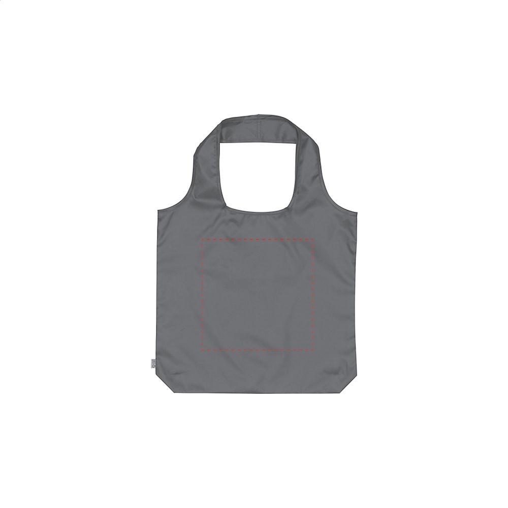 Geräumige, faltbare Einkaufstasche mit Doppelgriff aus 190T-RPET-Polyester. Schnell zusammenklappbar im Beutel auf der Innenseite der Tasche und leicht zu transportieren. GRS-zertifiziert. Gesamtes recyceltes Material: 95%. Maße gefaltet: 8 x 8 x 6 cm. Fassungsvermögen ca. 10 Liter.