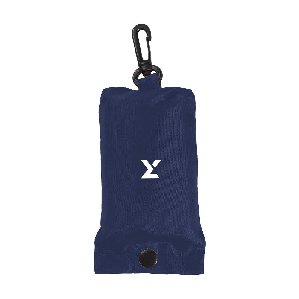 Faltbare Einkaufstasche aus 190T Polyester. Mit Aufbewahrungshülle mit Druckknopf und Karabinerhaken. Die Tasche wird ungefaltet mit separatem Beutel geliefert. Maße gefaltet: 6 x 2,5 x 12,5 cm. Fassungsvermögen ca. 8 Liter