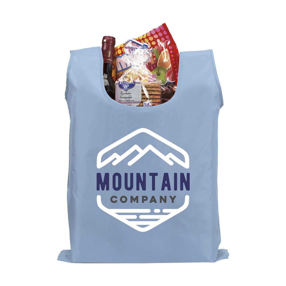 Faltbare Einkaufstasche aus 190T Polyester. Mit Aufbewahrungshülle mit Druckknopf und Karabinerhaken. Die Tasche wird ungefaltet mit separatem Beutel geliefert. Maße gefaltet: 6 x 2,5 x 12,5 cm. Fassungsvermögen ca. 8 Liter