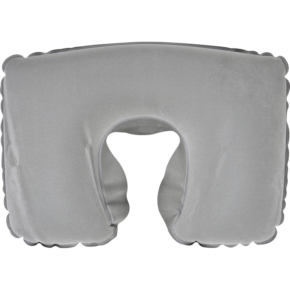 Aufblasbares Nackenkissen in Veloursoptik im praktischen Etui. Ihren Druck bringen wir auf der Hülle an.