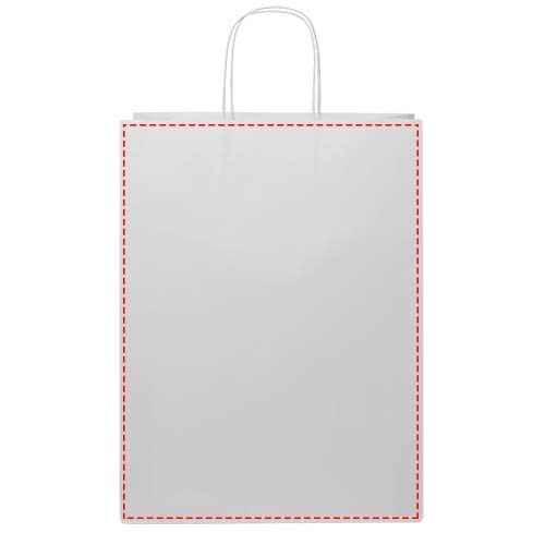 XXL 120 g/m2 Kraftpapiertüte (31 × 12 × 41 cm) mit gedrehten Papiergriffen. Die personalisierbare Vorder- und Rückseite bietet viel Platz für ein Logo oder ein anderes Design und ist somit ein hervorragendes Marketinginstrument für Unternehmen. Hergestellt in Europa und zu 100 % recycelbar. Diese Tragetasche ist eine nachhaltige Wahl für umweltbewusste Unternehmen und Personen, die eine nachhaltige Verpackungslösung suchen.