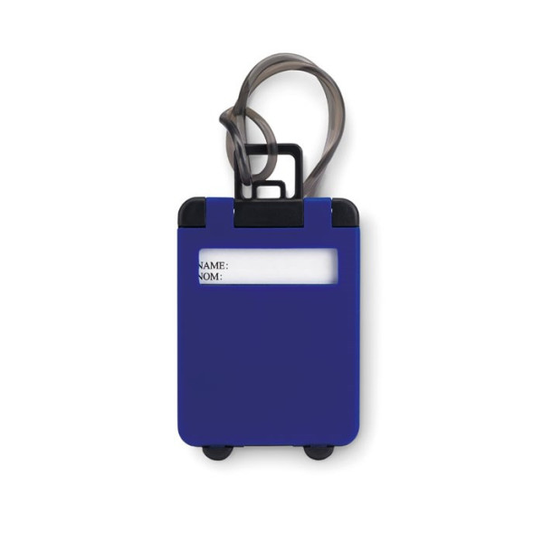 Kofferanhänger mit verstecktem Adressfeld. Aus Kunststoff.