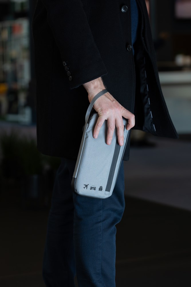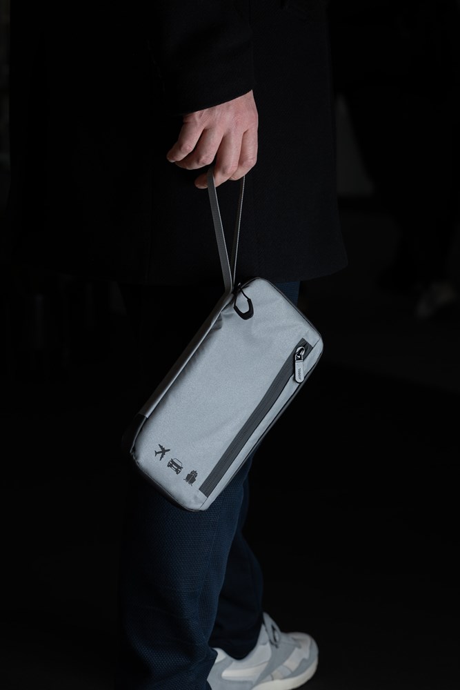 Etui für Reisedokumente, mit wasserfesten Reißverschlüssen und Handschlaufe, stark reflektierend, Fronttasche passend für Smartphone oder Reisepass, 11 Innenfächer für Karten und Reiseunterlagen, Stiftschlaufe, 100% Polyester, Polyester, grau