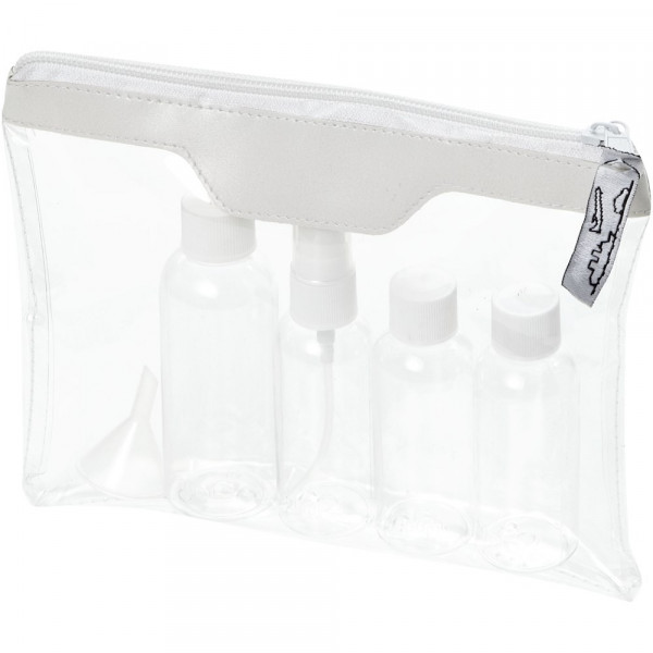 Für Flugreisen zugelassener Kulturbeutel, den Sie mit an Bord nehmen dürfen. Mit 2 x 50 ml Flaschen, 1 x 90 ml Flasche und 1 Zerstäuber und Trichter. Flaschen und Trichter im Kunststoffbeutel verpackt, werden getrennt vom Beutel geliefert. .