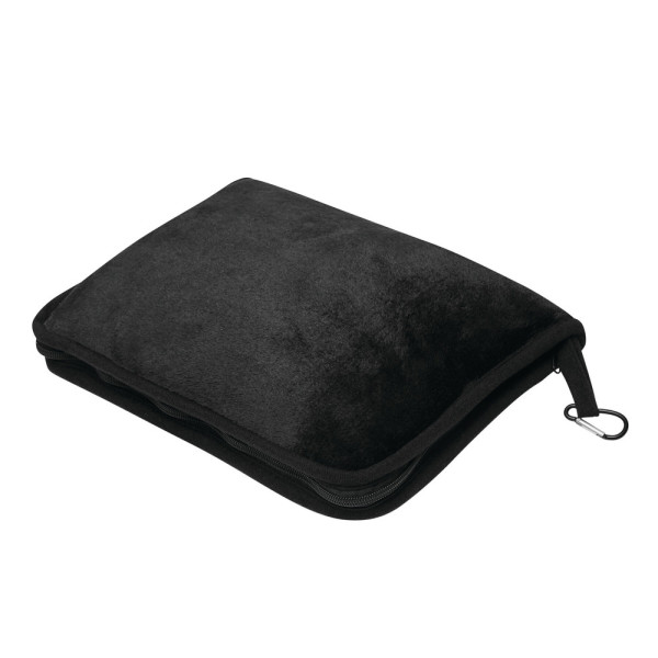 Reisedecke PURENAP: aus 100% rPET, weiches Wohlfühlerlebnis durch Plüschfleece, waschbar, in Tasche mit Reißverschluss zum Verschließen, Schlaufe mit kleinem Karabinerhaken (der Karabiner ist NICHT als Sicherung beim Klettern geeignet) und Gurt für Reporterfunktion, Decke lässt sich zusammengefaltet in der Tasche optimal als Kissen verwenden