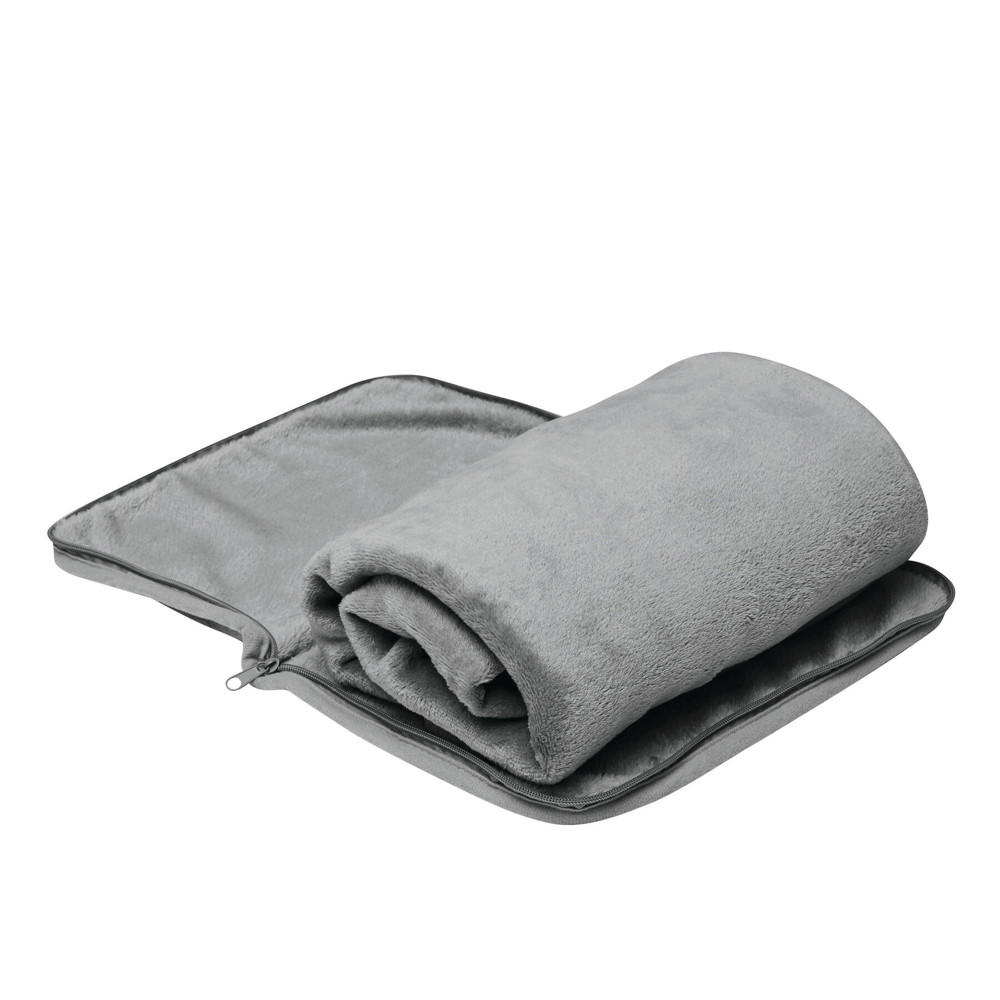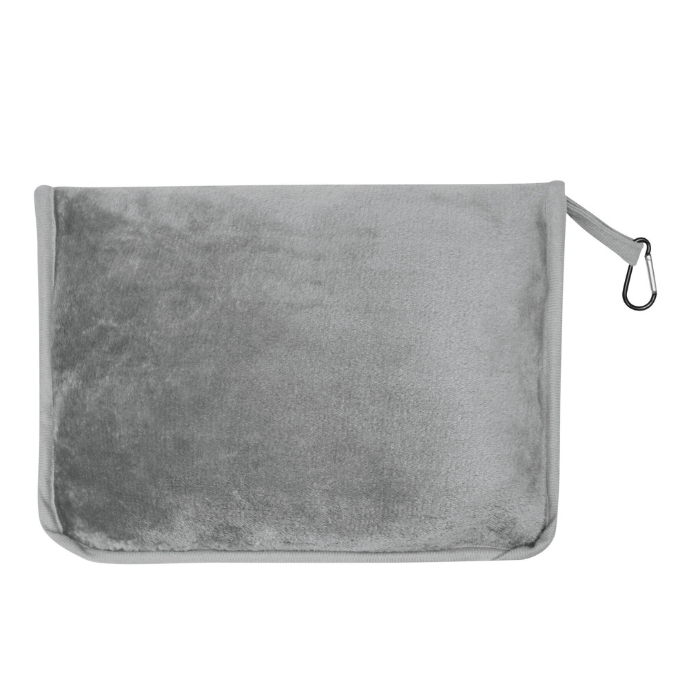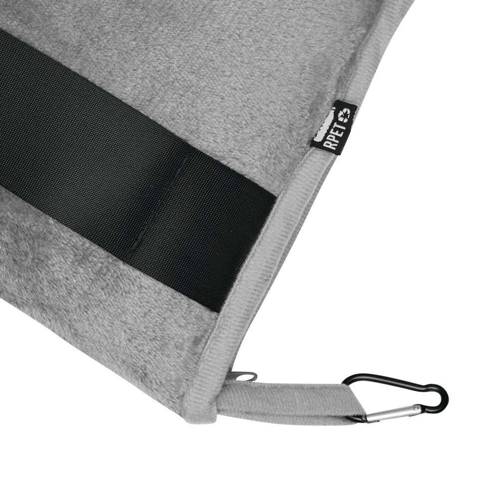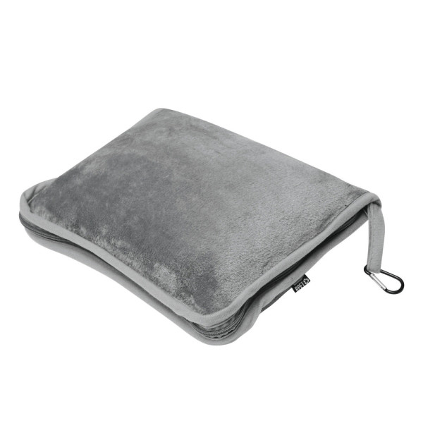 Reisedecke PURENAP: aus 100% rPET, weiches Wohlfühlerlebnis durch Plüschfleece, waschbar, in Tasche mit Reißverschluss zum Verschließen, Schlaufe mit kleinem Karabinerhaken (der Karabiner ist NICHT als Sicherung beim Klettern geeignet) und Gurt für Reporterfunktion, Decke lässt sich zusammengefaltet in der Tasche optimal als Kissen verwenden