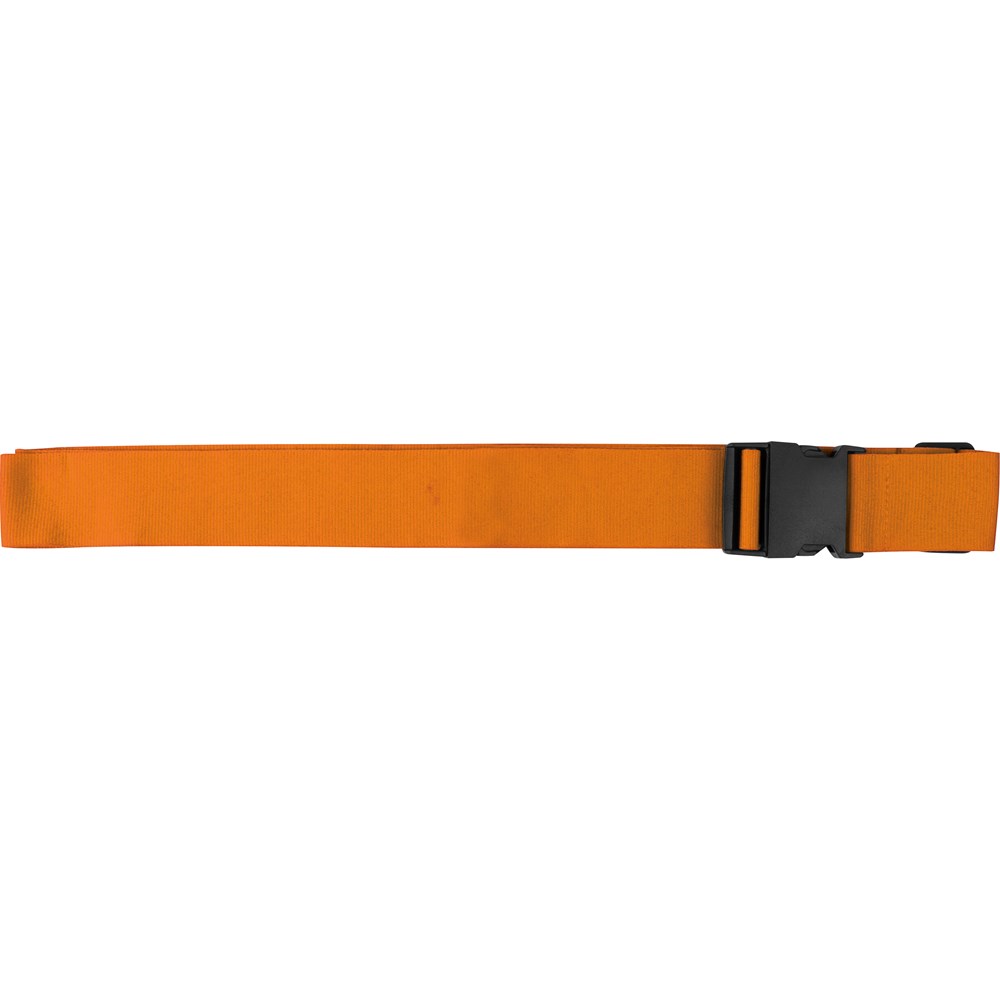 Verstellbares Kofferband aus Polyester mit Verschluss. Ihre Werbung wird auf das Band (Logo wird wiederholt) gedruckt. Nur 1C Druck möglich.